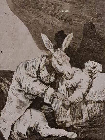Bild links: Goya, Capricho Nr.40: A quel mal morir? Bild Mitte: Jan. Bild rechts: Guido van der Werve: everything is going to be alright.Fotos: Silvia MatrasBild rechts:Jan Cossiers: Prometheus. Fotocredit: Photographic Archive Museo National del Prado, Madrid