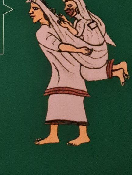 Einmal verheiratet, heißt es ewige Treue halten! Ehebruch wurde mit dem Tode bestraft. Ziemlich heftige Gesetze! Aber sie galten für beide. Auch der Mann war zur Treue verpflichtet und konnte nicht, wie in manch anderen Kulturen, einfach seine Frau verstoßen und sich eine neue wählen. Das wiederum ist ziemlich sympathisch. Schulbildung galt für Mädchen und Buben gleichermaßen. Auch sympathisch. Die Erziehung war sehr streng, Hiebe und noch härtere Maßnahmen sorgten für Disziplin, weniger symoathisch. Handwerker hatten eine Sonderstellung und wurden hoch geachtet, besonders die Federkünstler. (Im Obergeschoß ist in der Abteilung „Mittelamerika“ auch der prunkvolle Federschmuck zu sehen) Hebammen waren ebenfall sehr angesehen.All diese interessanten Details sind neben den Zeichnungen in kleiner Schrift angebracht und ein wenig mühevoll zu lesen.Fast unlesbar sind auch manche Beschriftungen an den Vitrinen. Da die Räume wegen der Empfindlichkeit der ausgestellten Objekte abgedunkelt sein müssen und die Texte direkt auf die Vitrinen appliziert sind, sind die Texte kaum zu entziffern. Und Handytaschenlampen sind nicht erlaubt. Aber die spannende und aufschlussreiche Gestaltung der Ausstellung macht diese Mängel mehr als wett.