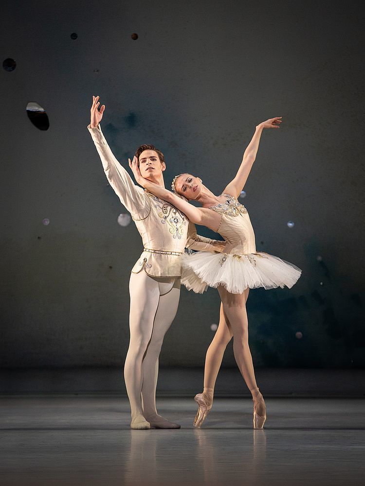 Prima la Primaballerina, dopo il Ballerino! Das gilt besonders für den letzten Teil der „Jewels“, in dem Olga Esina mit ihrer strahlende Tanzkunst das Publikum betört. Von Jakob Feyferlik mit sichtlichem Respekt und Begeisterung unterstützt tanzt sie mit der ihr innewohnenden Ruhe. Jede Figur wird von innen her gelebt und fließend mit der nächsten verbunden. Beider Soli sind Glanzleistungen, die vom Publikum mit langem Applaus bedacht werden. Nicht unerwähnt sollte die Leistung des Corps de Ballet bleiben, die exakt und scheinbar mühelos die klassische Schule tanzen.