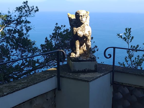 Natürlich steht auch das Haus des schwedischen Arztes Axel Munthe (1857-1949) in Anacapri auf dem Programm. Weniger fasziniert das Haus, das eher düster und winkelig wirkt, als der Garten mit den wuchernden Pflanzen, den antiken Figuren und natürlich den beiden Sphingen – eine sieht den Besucher direkt an, die andere reckt ihm ihr unschönes Hinterteil entgegen.