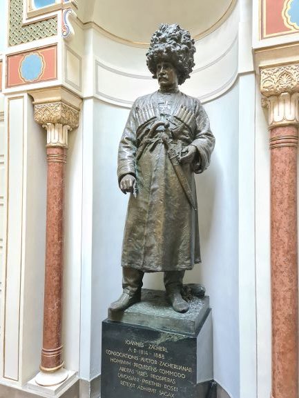 Liebhaber ungewöhnlicher Geschichten und Orte werden am nächsten Tag in Döbling fündig. In der Nusswaldgasse14 steht die „Zacherlfabrik“. Ihr Gründer Johann Zacherl war ein typischer Selfmademann des 19. Jahrhunderts. Auf seinen Reisen durch Georgien entdeckte er, dass die Bewohner die Pyrethrumblüten als Schutz gegen Ungeziefer aller Art verwendeten. Er sicherte sich das Patent und produzierte in genannter Fabrik das Insektenpulver, allgemein als Zacherin bekannt, das er bald in die ganze Welt exportierte. Sein Sohn Johann Evangelist Zacherl beauftragte Heinrich von Ferstel mit dem Bau eines neuen Fabriksgebäudes. Seine Liebe zu Tiflis und Georgien spiegelt sich in den orientalischen Dekorationen wider. Dank des großen Verkaufserfolges dieses Mottenpulvers wurden weitere Wohn- und Fabriksgebäude errichtet. Heute führt der Urenkel des Gründers, Architekt Peter Zacherl, durch die verfallenen Hallen und erzählt stolz die Erfolgsgeschichte seiner Vorfahren.