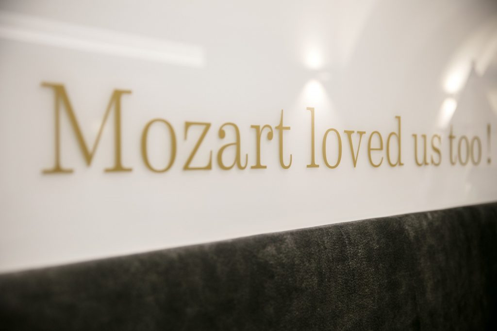 Im ältesten Trakt des Hotels „DAS TIGRA“, damals noch kein Hotel, wohnte 1762 für mehrere Monate der sechsjährige Mozart mit Schwester Nannerl und Vater Leopold. Als berühmtes Wunderkind war er eingeladen, vor der Kaiserin Maria Theresia vorzuspielen. Sie soll damals von ihm und seinem Talent ganz entzückt gewesen sein. Doch elf Jahre später interessierte sie sich nicht mehr für ihn, war er doch aus dem Alter des Wunderkindes herausgewachsen. In der Lobby empfängt er heute noch die Gäste.