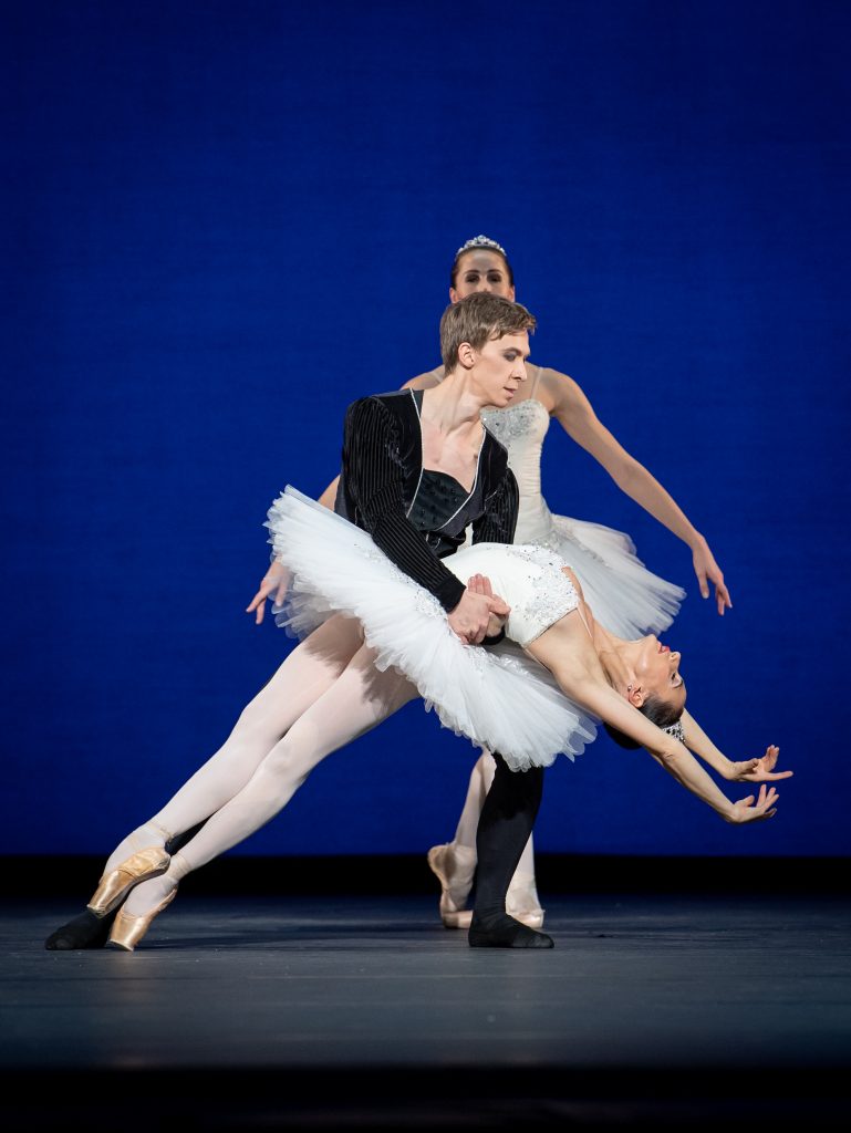 Klassisch: Vor azurblauem Hintergrund Tänzerinnen im weißen Tütü und Tänzer im eleganten schwarzen Samt. Spitze, Spitze im besten Sinn, Balanchine feiert die Hochklassik des Balletts.