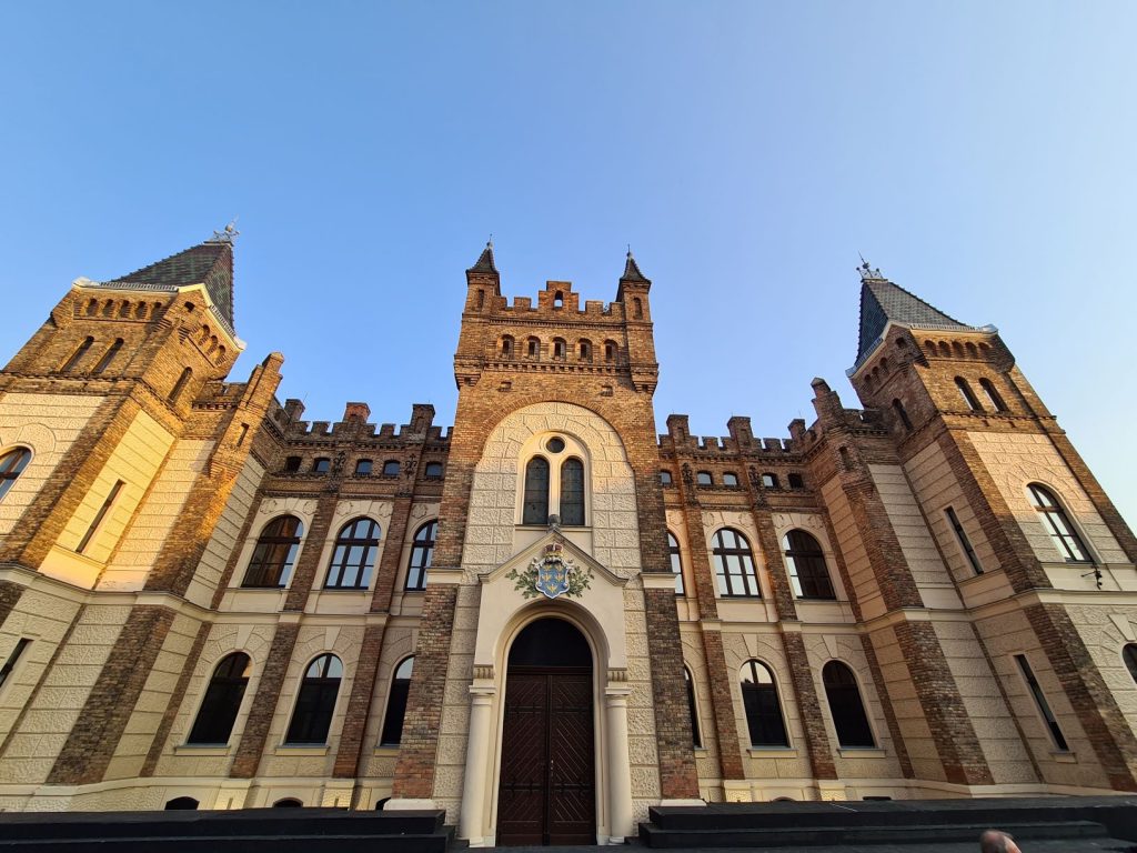 Das muss man Bruno Max lassen: Er hat ein Gespür für richtige Location! Die impsosante Fassade des ehemaligen Waisenhauses, gestiftet von dem Anatomen Josef Hyrtl, erbaut im spätgotischen Mischmaschstil des ausgehenden 19. Jahrhunderts, unter der Leitung des damaligen Bürgermeisters Josef Schöffel, stellt die ideale Kulisse für dieses Degenstück dar. Alles da, was man braucht: Schloss, Schlossgraben, Garten – schnell imaginiert mit drei Plastikkugelbäumen – ja selbst für den Buckinhampalast ist diese schöne Fassade eine ideale Kulissse. „Wir schlagen damit (-mit der Wahl dieses Platzes) mehrere Fliegen mit einer Klappe“, schreibt Bruno Max im Programmheft. „Wir bringen Theater in die Schöffelstadt, die im Gegensatz zur Altstadt theatermäßog unterversorgte Zone Mödlings, und zeigen das schlafende Potential dieses schönen Platzes auf.“