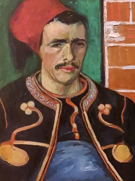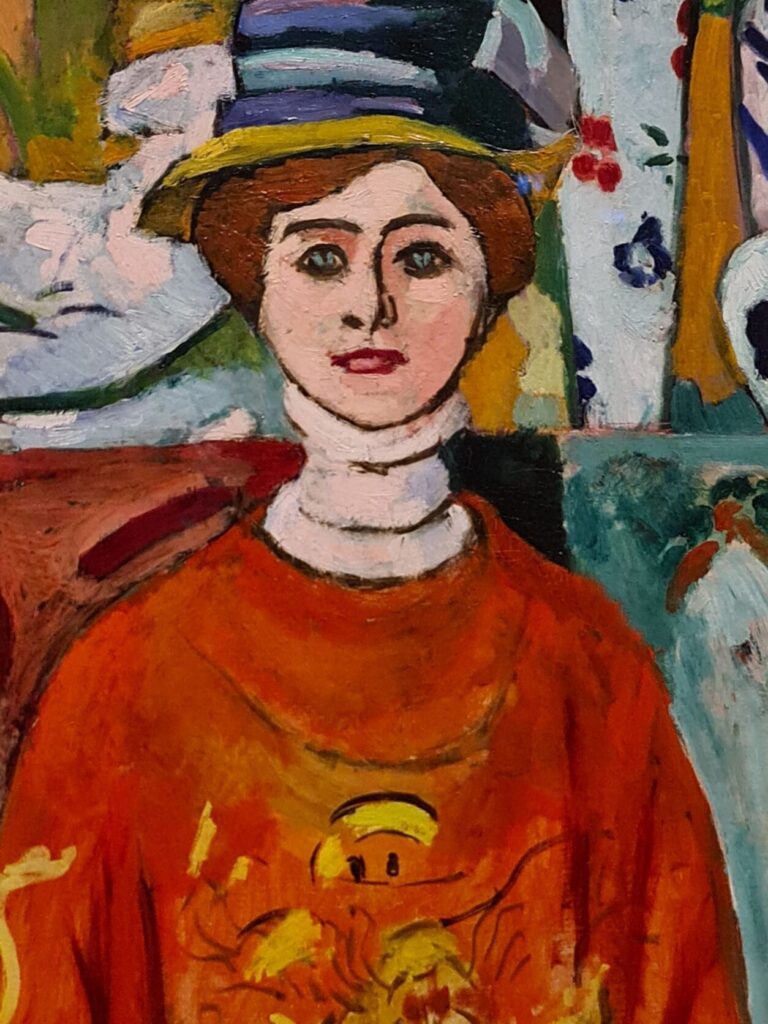 Gut gestaltete Ausstellung. Klare Konfrontation zwischen Klimt- und Vor-Bild, wie etwa Bild oben: Klimt: Johanna Staude, klare Farben und scharfe Konturen. Dazu die Bilder, die Klimt beeinflusst haben könnten: Matisse: Das Mädchen mit den grünen Augen. Oder Van Gogh: Zuave.