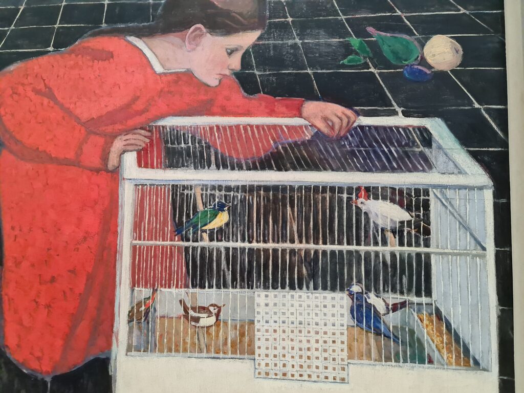 Wiener Naschmarkt. Tochter Silvia Koller mit Vogelkäfig. Die Mutter der Kümstlerin (© Silvia Matras)